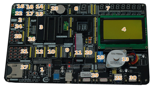 整機(jī)集成了所有單片機(jī)應(yīng)用中可能遇到的功能模塊部份,