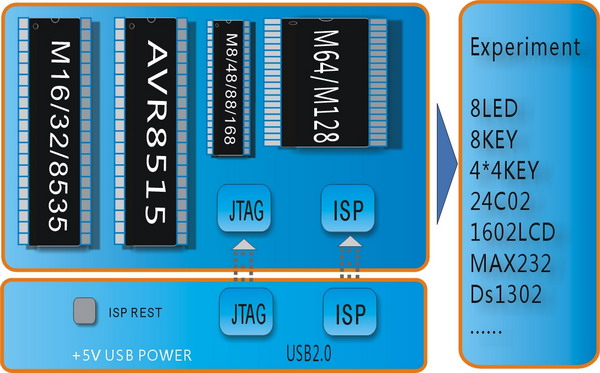 開發(fā)板直接支持:M16,M32,M8535,M8515,M8,M48,M88,M168,M64,M128(以上芯片可直接在板上下載實(shí)驗(yàn),