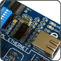 以太網(wǎng)控制器模塊--采用Microchip的ENC28J60芯片,通信完全符合IEEE802.3規(guī)格,最高可達(dá)10M的通信速率,通過兩中斷功能SPI接口實(shí)現(xiàn)與主控制器通信. |